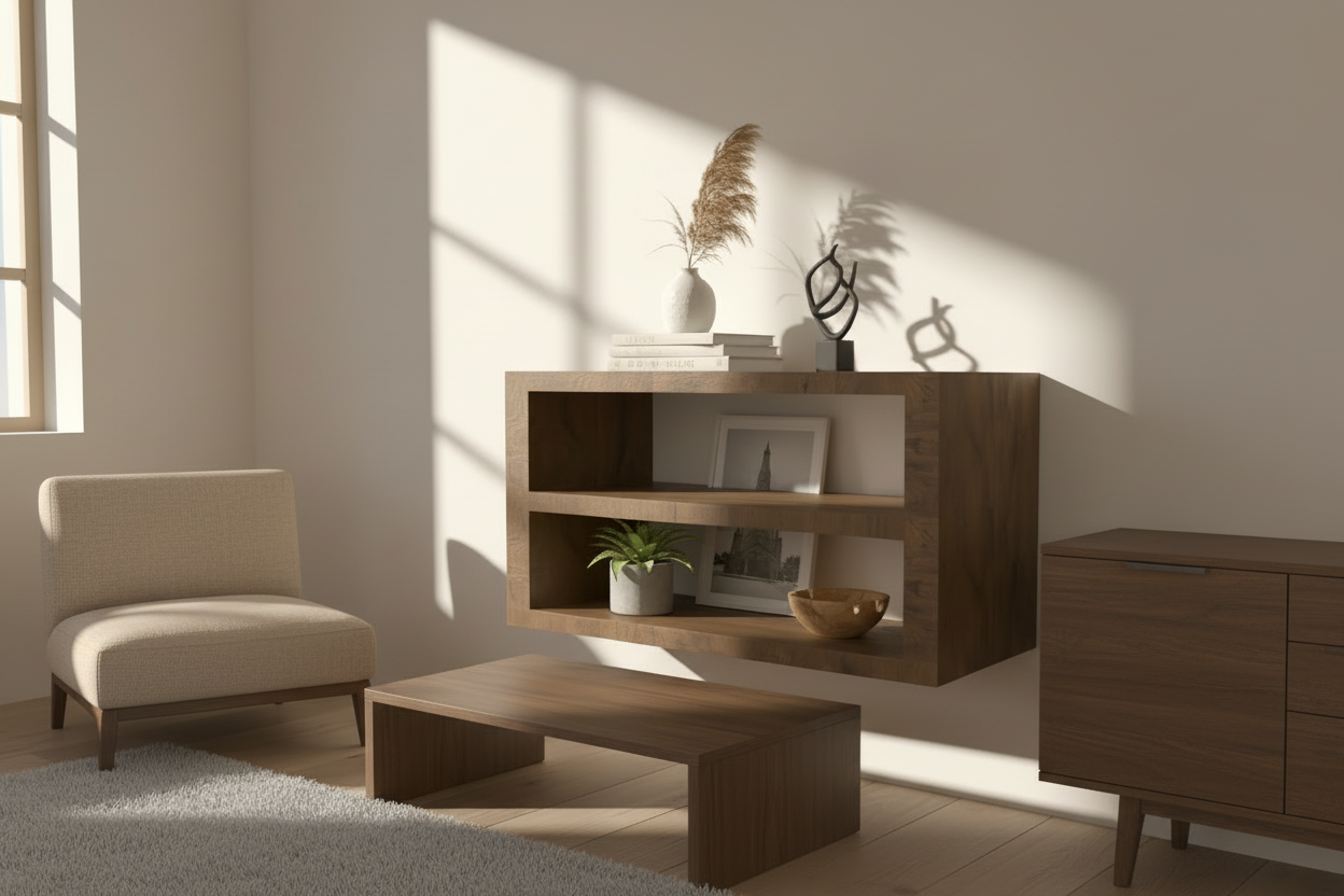 Móvel de entrada suspenso em madeira maciça de freixo com prateleira. Peça funcional e elegante que combina armazenamento prático com design contemporâneo. A madeira de freixo, conhecida pela sua resistência e veteado distinto, garante durabilidade e beleza duradoura. A prateleira integrada oferece espaço versátil para chaves, adornos ou itens do dia a dia. Acabamento refinado que se adapta a interiores modernos e clássicos. Instalação suspensa poupa espaço e cria uma silhueta limpa na sua entrada.
